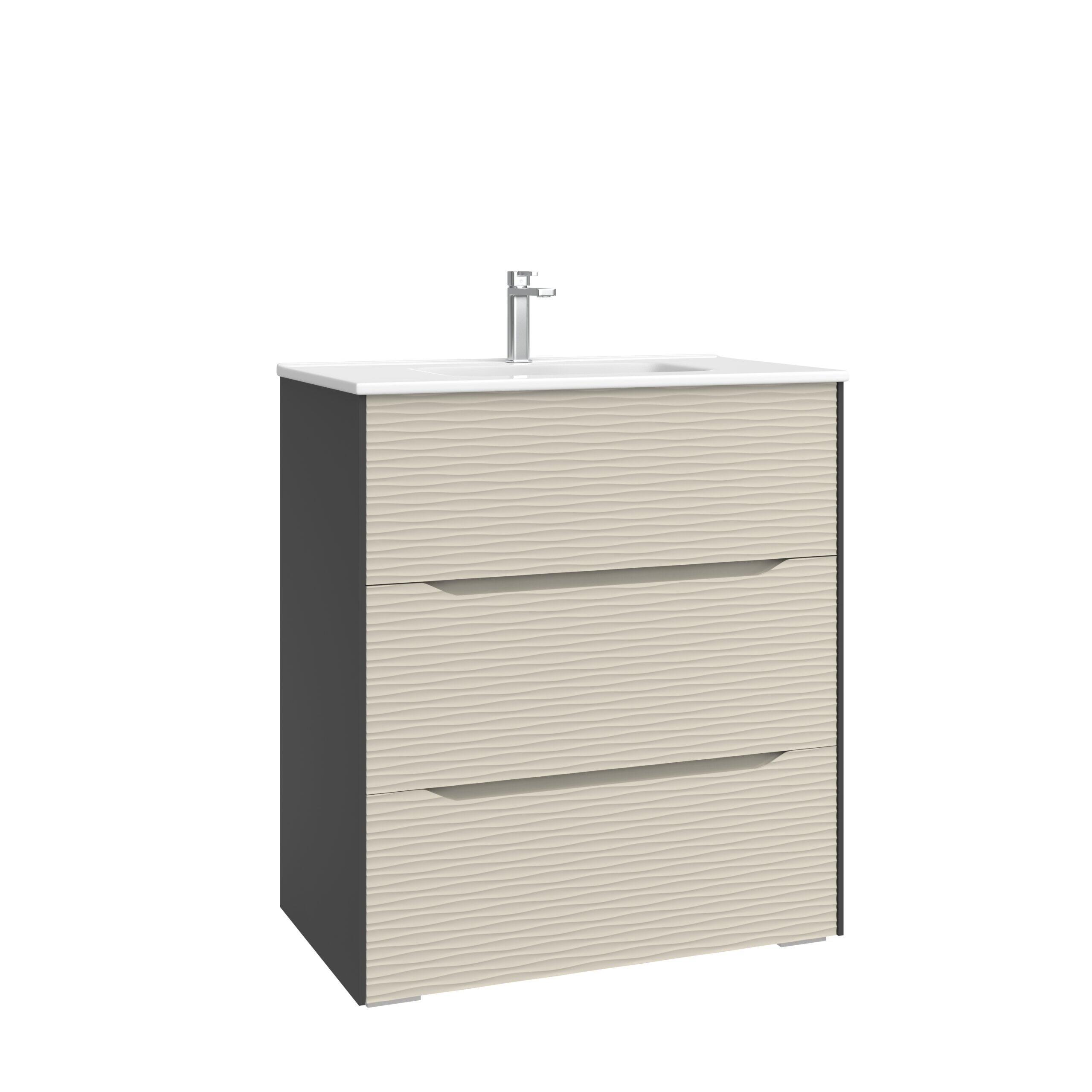 Déjate cautivar por Dune, con sus frentes ondulados que evocan las sinuosas dunas del Sahara. Este mueble está disponible en dos modelos: 2 y 3 cajones de extracción total, con apertura a través de un discreto uñero del mismo color que el frente.